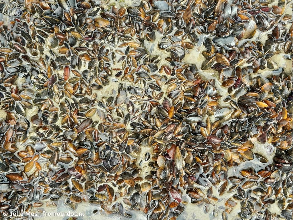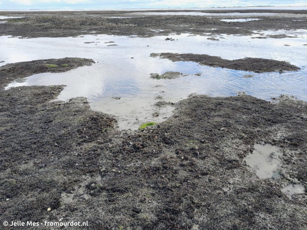 The young mussels did not stick out much above the intertidal seafloor in most places (e.g. Fig. 3) though in some spots near older mussel reefs more 3D structure was starting to appear (Fig. 4). This matches the development of reefs as described above.
